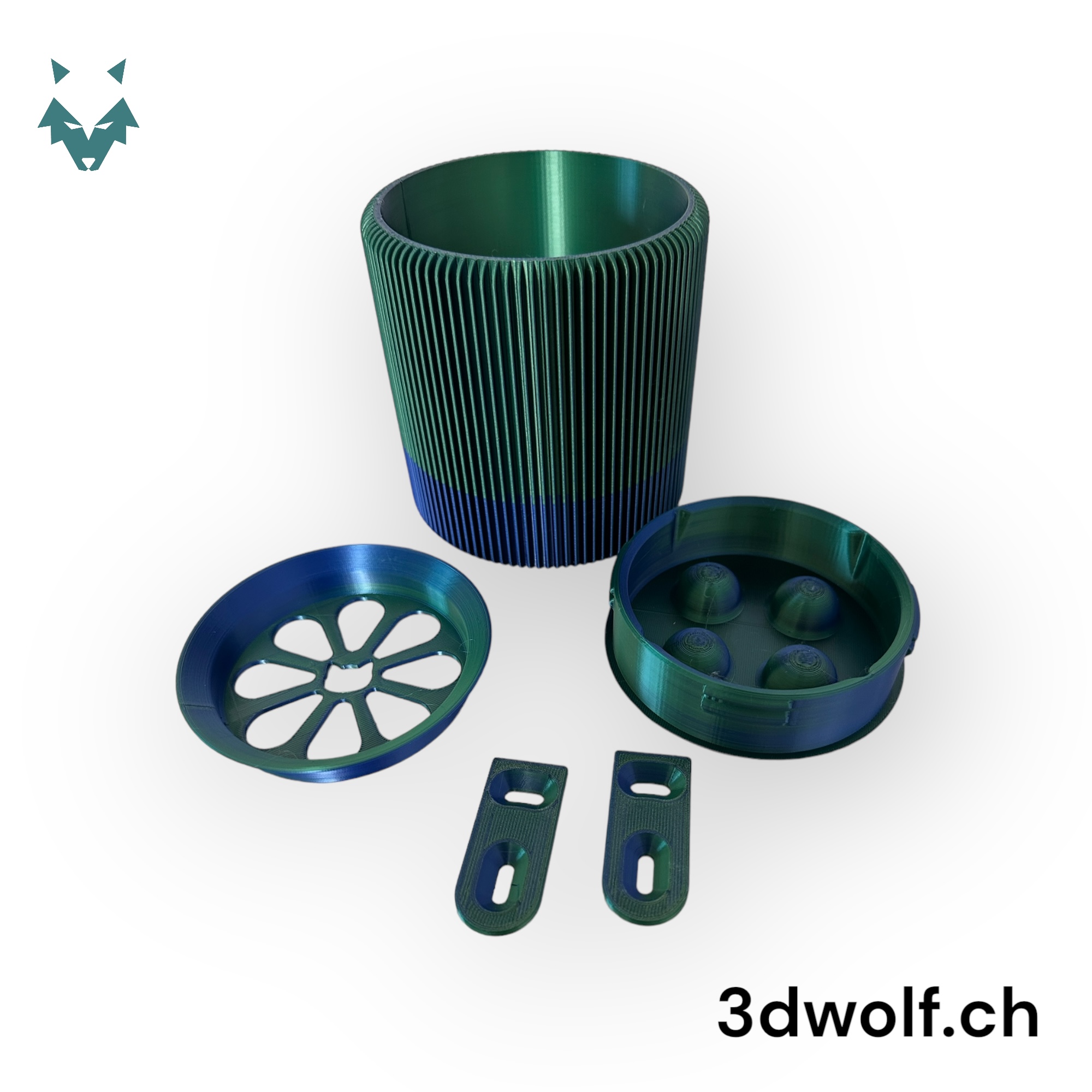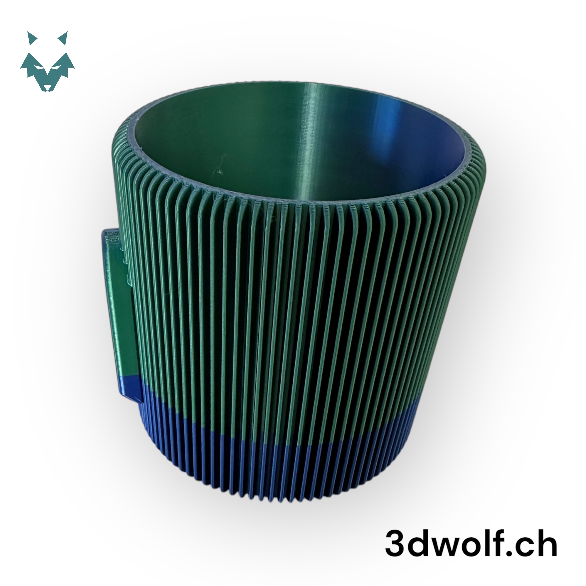 Dieser Blumentopf zeichnet sich durch sein elegantes Finnen-Design aus und ist in einem attraktiven grün-blauen Farbton gehalten, der auf dem Foto abgebildet ist. Wenn Sie Ihre persönliche Note hinzufügen möchten, wählen Sie beim Bestellvorgang einfach Ihre bevorzugte Farbe aus. Wir werden dann mit einem Farbmuster auf Sie zukommen, um sicherzustellen, dass alles Ihren Wünschen entspricht.