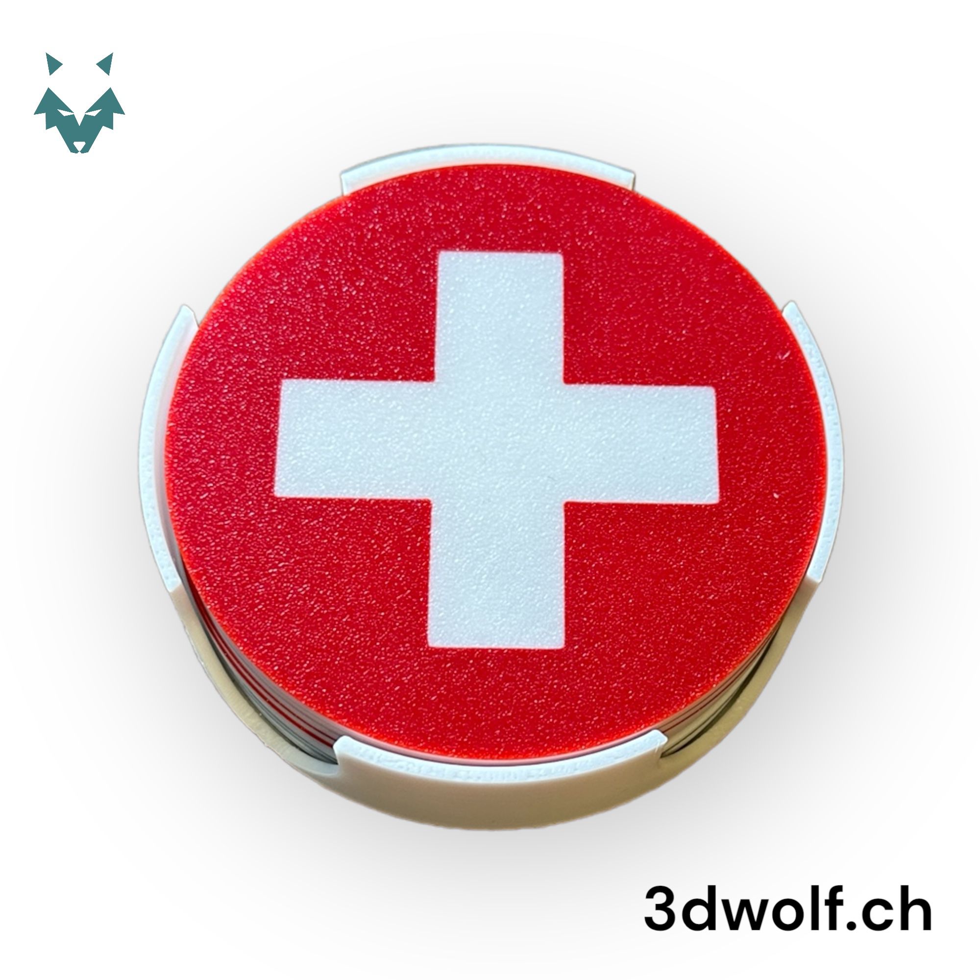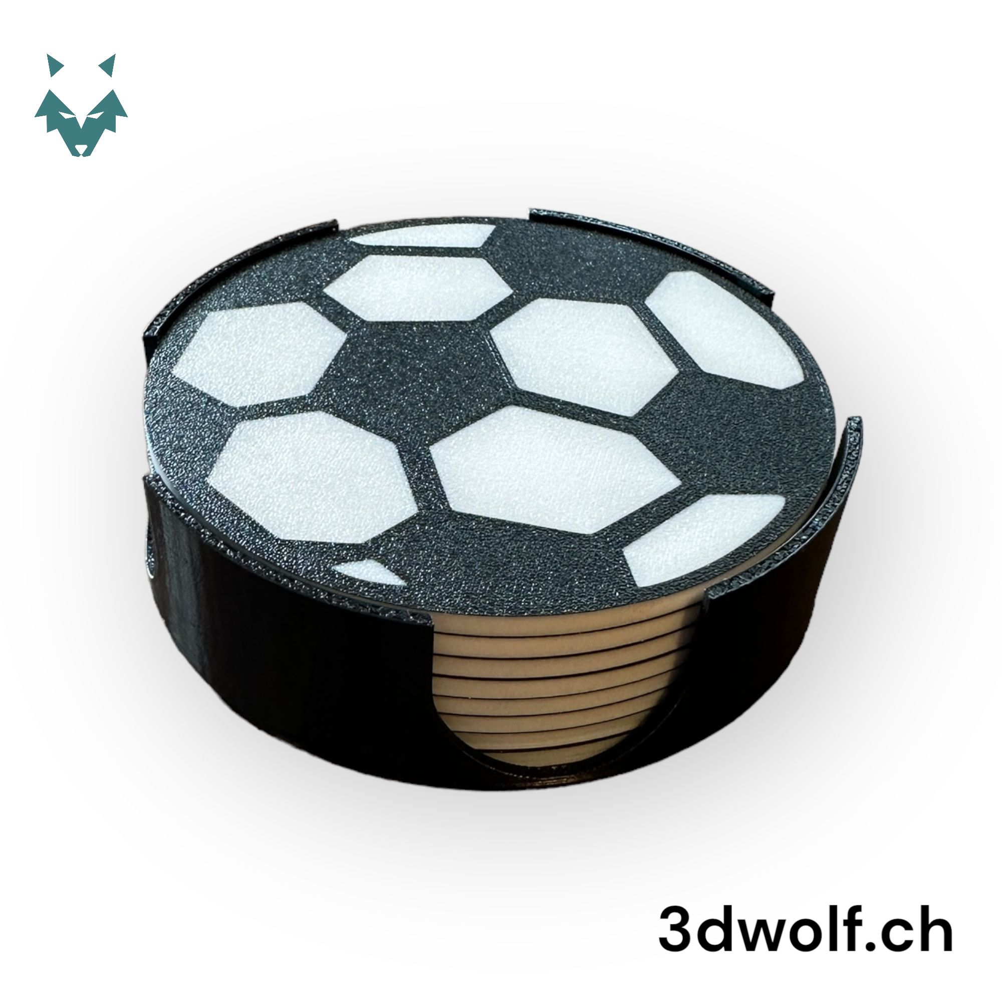 Glasuntersetzer-Set im Fussball- und Schweiz-Design aus nachhaltigem PLA
