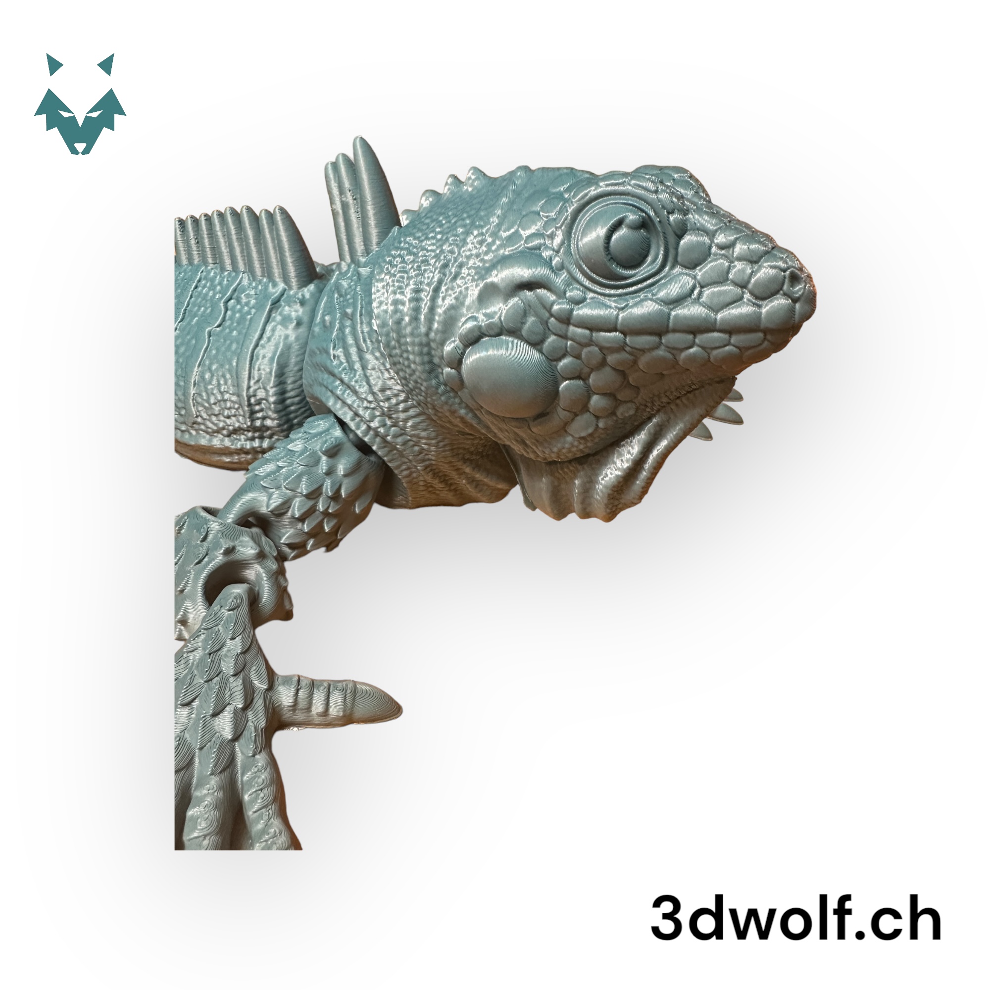 Stellen Sie sich vor, Sie bringen ein Stück der Wildnis direkt in Ihr Zuhause oder Büro mit unserem beeindruckenden 3D-gedruckten Leguan. Gefertigt von Toonz Factory, ist dieser Leguan mit einer beeindruckenden Länge von 48 cm ein wahrer Blickfang. Er ist aus hochwertigem, umweltfreundlichem PLA in einem ansprechenden Blauton hergestellt, der jede Umgebung belebt.