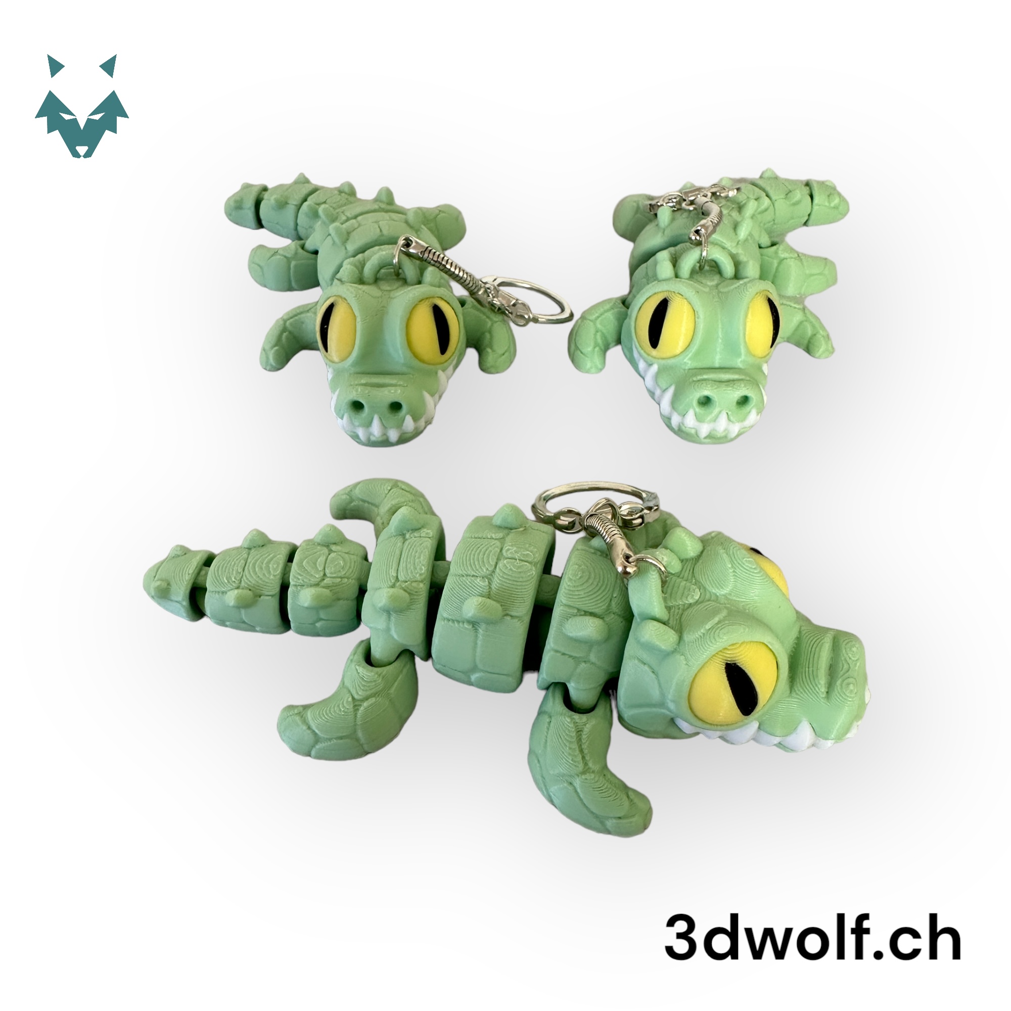 Grüner Krokodil-Schlüsselanhänger aus Recycling-PLA